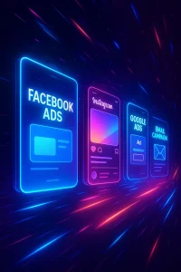 Paid campaigns: Running Google Ads, Facebook Ads, Instagram promotions, and YouTube ads.